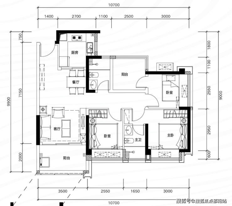 ✅ B06 户型:约109㎡ 阔绰四房两厅两卫: