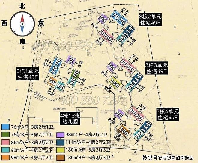 05地块,也是本次首推的地块,有4栋住宅,1所18班制幼儿园,1栋43F,3栋49F住宅。