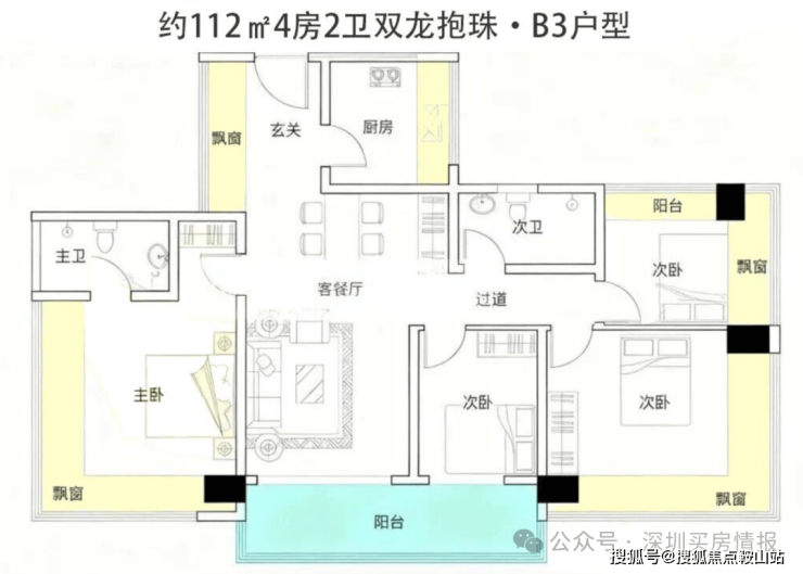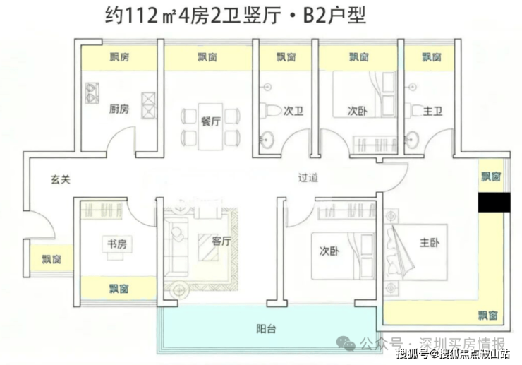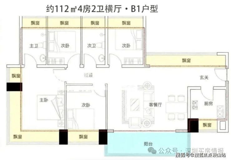 首推主力户型:112-122㎡纯四房住宅