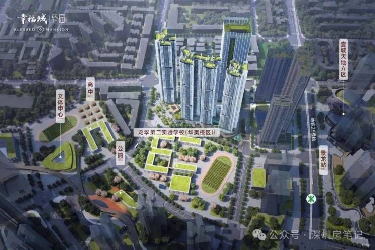 幸福城臻园位于龙华人民路与景龙建设路西南侧,隶属龙华商业中心城市更新北片区。该旧改项目是龙华的"巨无霸",总体量达161万㎡,规模仅次于鸿荣源壹城中心,是由幸福城、鸿荣源尚云、金地宸峯府、中洲等开发商共同开发的连片高端住宅区。