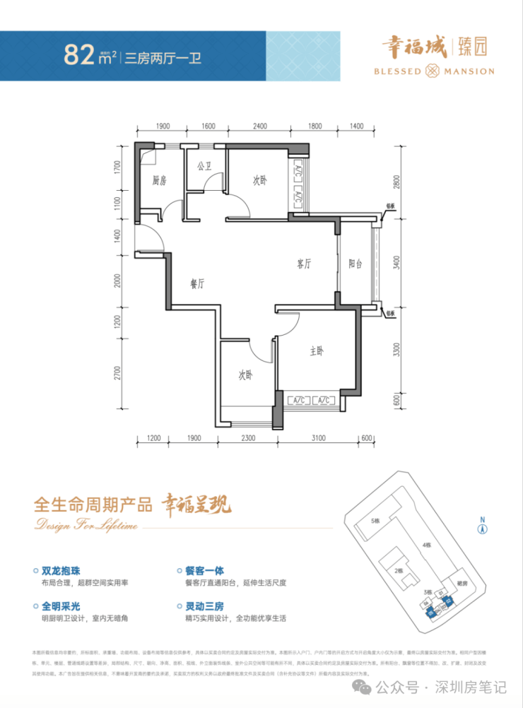 82㎡三房:320-340万,单价3.85-4.09万/㎡