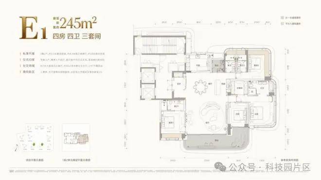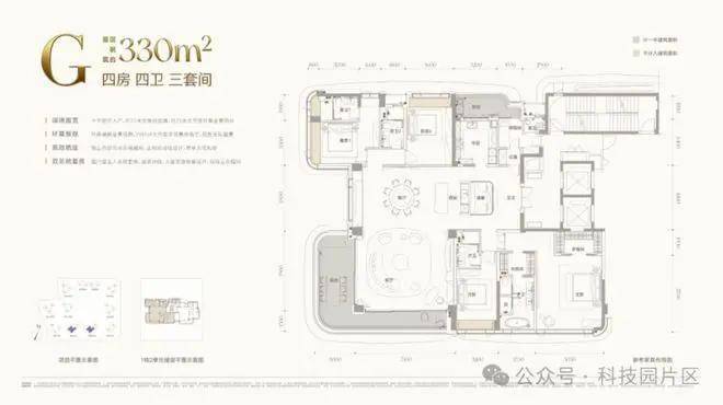 2梯2户,专梯入户。270°环幕阳台,客餐厅约7米面宽,约69㎡社交方厅。南向三套房设计,约18米南向面宽。