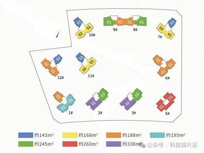 项目共规划11栋楼(含12个单元),主打纯大户型产品,建面涵盖约140㎡、168㎡、190㎡、253㎡及332㎡等多个区间。