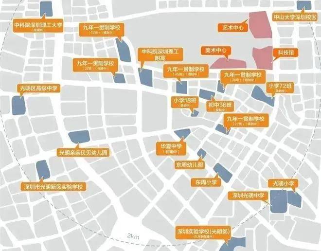 旁边是华夏中学跟华南师范大学附属光明星河小学,东周学校,周边也分布有多所学校,包括有南方科技大学附属光明学校、深圳小学、四大名校之一的深圳外国语楼村分校等多所市属名校分校
