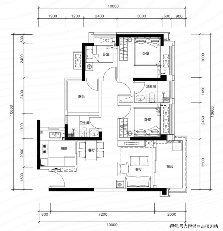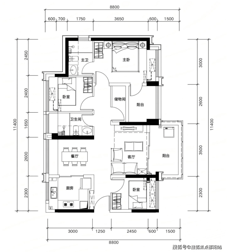 ✅ B06 户型:约109㎡ 阔绰四房两厅两卫:
