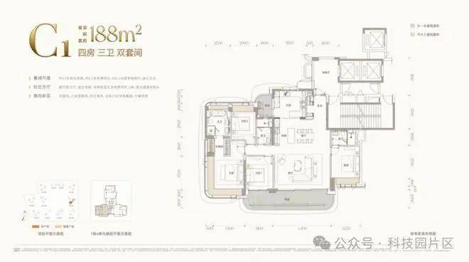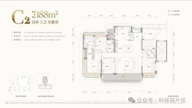 C户型 约188㎡四房三卫