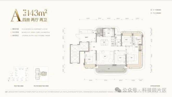 A户型 约143㎡四房两卫
