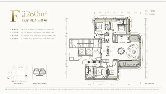 约260㎡(四房四卫三套间):项目“头牌”,全盘仅40套。采用创新的全景舱设计,拥有270°无遮挡环幕海景。专梯入户、十字前厅,仪式感与景观视野双双拉满。