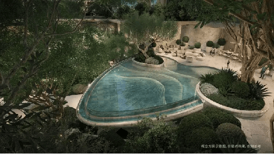 约5.5万㎡三层立体园林:以“森海·浮屿”为概念,打造峡谷、银滩、心形戏水池、800㎡中央水景等多重景观,移步换景,仿佛漫步于滨海度假胜地。