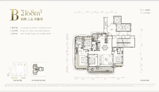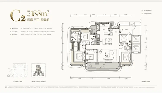 约188㎡(四房三卫双套间):宝中“六边形战士”。集核心地段、顶尖配套、实用空间、优质景观、央企品牌于一身,几乎没有短板,预计将成为竞争最激烈的户型。